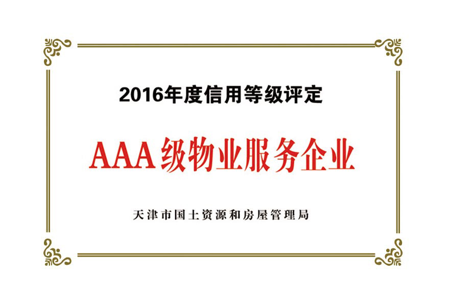 公司目前被授予:中國保安協(xié)會理事單位、物業(yè)管理綜合實力入圍企業(yè)、天津市物業(yè)協(xié)會理事單位、天津市保安協(xié)會常務(wù)理事單位、天津市保潔協(xié)會明星企業(yè)、天津市科技小巨人企業(yè)、天津市科技型企業(yè)、天津市物業(yè)管理企業(yè)優(yōu)秀項目經(jīng)理、企業(yè)信用評價體系A(chǔ)AA級企業(yè)、AAA級誠信經(jīng)營示范單位、AAA級重合同守信用單位、2017年被天津市工商業(yè)聯(lián)合會評為天津市民營企業(yè)促進(jìn)就業(yè)百強企業(yè)、社會捐贈百強企業(yè)、2018年銷售收入百強企業(yè),2020年被天津市退役軍人事務(wù)局評為天津市吸納退役軍人就業(yè)先進(jìn)單位。